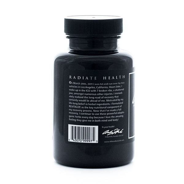In our pursuit of clean health and a vibrant existence, we've handpicked the most powerful Adaptogenic Herbs on earth to create our first herbal supplement to support energy levels, mindful thought, and glowing skin. Our Founder's morning tonic encapsulated. Revitalize's formula utilizes time-tested practices of traditional Chinese medicine and carefully selected Adaptogenic Herbs including Organic Spirulina, He Shou Wu, Organic Chaga, Organic Reishi, and Organic Schisandra berry. Balancing and nourishing your stress response and boosting energy and muscle recovery for our fast-paced modern lives.
