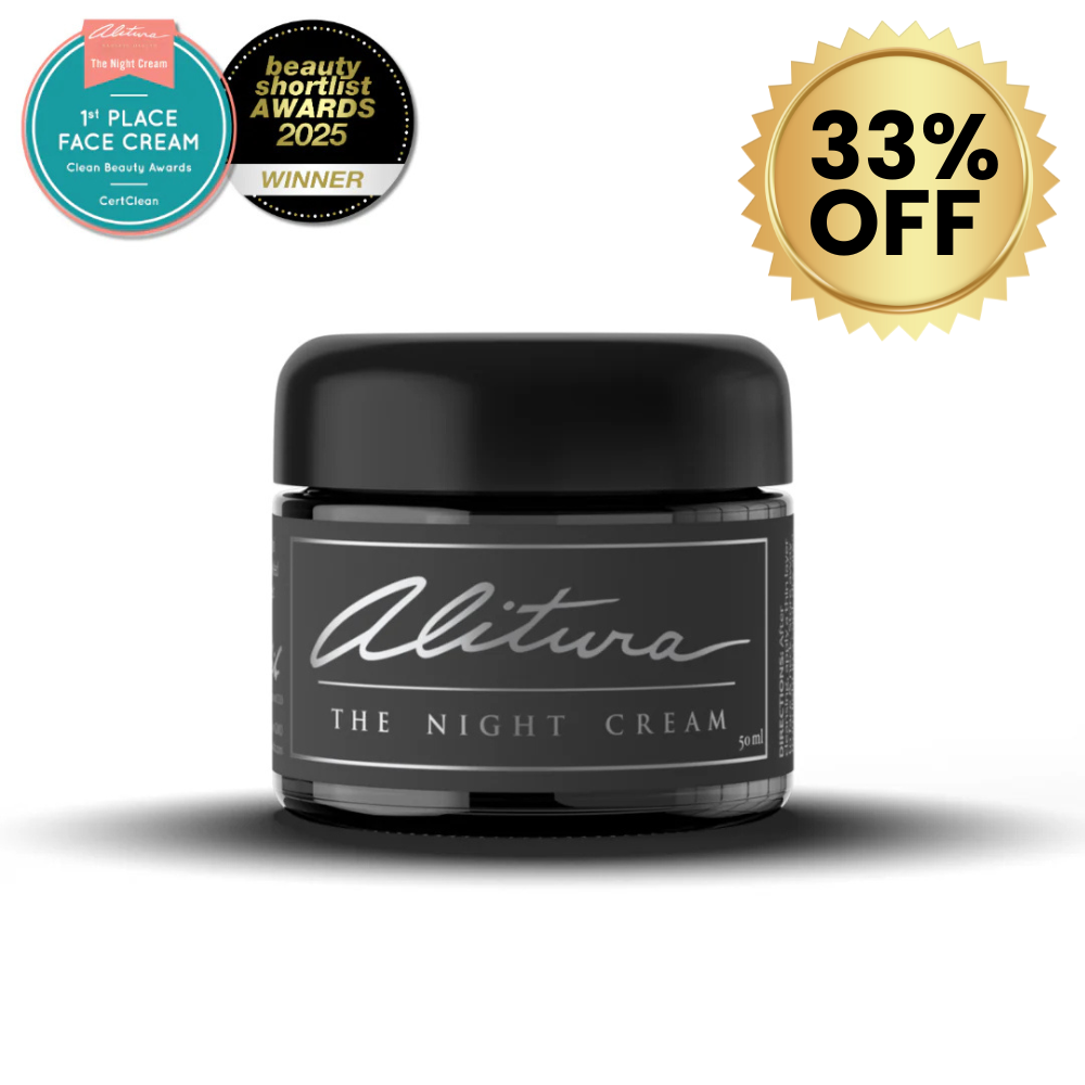 Your body flourishes at rest and so do the cells of your skin. Made with 73% Organic Ingredients, the Alitura Night Cream is the pinnacle of nighttime nourishment for face and eye restoration. Refine and nourish your skin with the synergy of Plant Derived Stem Cells, Vegan Hyaluronic Acid and Manuka Honey. A revolutionary approach to anti-aging skincare, our Night Cream was meticulously formulated with antioxidant-rich organic botanicals to hydrate dry skin, condition and repair sun-damaged skin, stimulate collagen growth and more— all while you sleep.