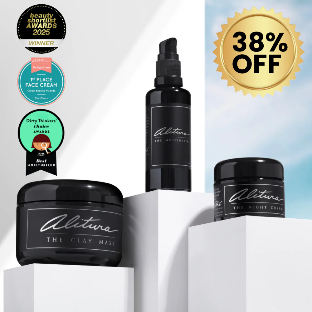 This is the perfect skincare starter set to begin your Alitura routine. Our plant-powered trifecta of Award Winning formulas provide visibly noticeable results. Start your day with an invigorating Alitura Clay Mask, follow with The Moisturizer to hydrate and heal the skin and seal in your skin results at night before bed with The Night Cream. Revitalize and transform your skin with our all-natural active ingredients that help minimize fine lines, cleanse pores and brighten your complexion.
