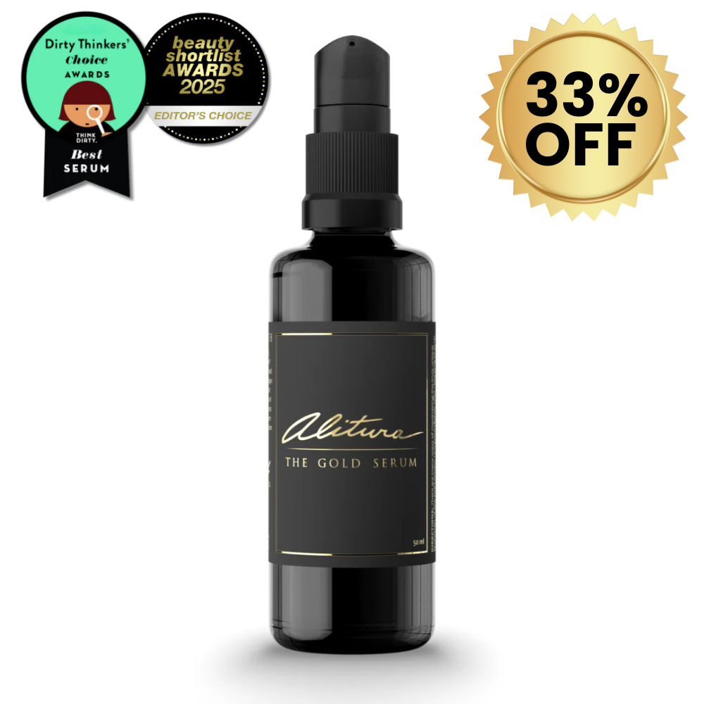 Elevate your skincare routine with The Alitura Gold Serum, a potent elixir hand-crafted to nourish, restore, and illuminate your complexion. Made with 95% Organic Ingredients, this powerhouse formula blends cutting-edge bioactive botanicals, antioxidants, and skin-rejuvenating compounds to deliver both instant radiance and long-term skin health.